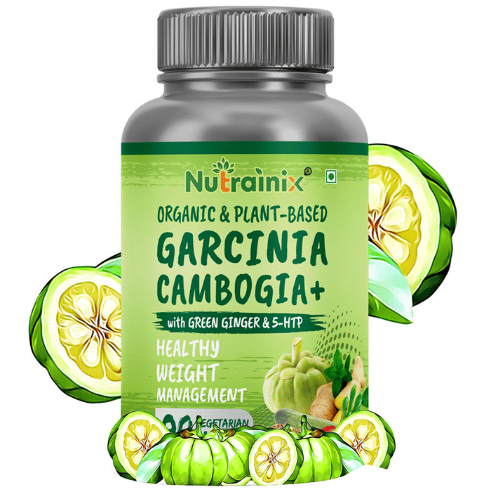 Nutrainix Organic & Plant-Based Garcinia Cambogia+ Vegetarian Capsule is an ideal choice for anyone seeking a healthy path to weight management. Garcinia is known to have natural metabolism boosting and appetite suppressing properties that help you manage your weight better. When consumed as part of a healthy diet and exercise plan, this supplement promotes better health and a more active and fit lifestyle. | Key Ingredients: Organic garcinia cambogia powder Organic cumin seed powder Organic konjac root powder Organic mint leaves powder Organic green ginger powder Organic cucumber powder Organic radish powder | Key Benefits: It is a natural appetite suppressant, carb blocker and metabolism booster for safe weight loss It boosts your energy, burns calories and generates heat to help you burn belly fat faster This product helps to lose weight quickly when supplemented with normal exercise and a healthy diet Garcinia cambogia, a tropical fruit also known as the Malabar tamarind, is popular and beneficial for weight-management supplements | Directions For Use: Read the label carefully before use. | Safety Information: Read the label carefully before use Store in a cool and dry place away from direct sunlight Keep out of reach of children
