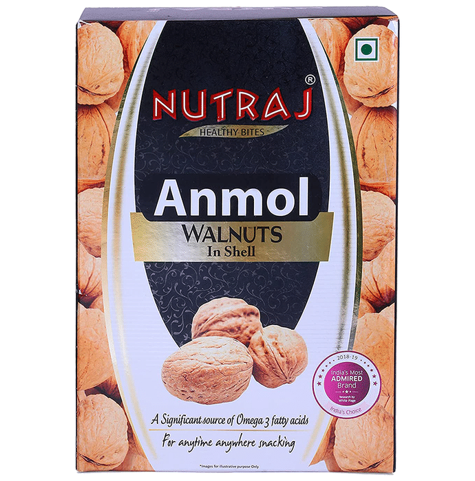 Nutraj Anmol Walnuts are healthy snack that has immense health benefits. They are plant-based, purely vegetarian and do not contain any GMOs. Walnuts (Akhort) are suitable for the skin as they contain vitamin B. Walnuts with omega-3 fatty acids, fibre, vitamins and minerals known to reduce heart disease risk diseases. The outer shell protects and provides natural freshness. Crack them for snacking or use in recipes just when you want them. | Key Ingredients Walnut In Shell | Key Benefits It can help reduce bad cholesterol and increases blood flow to the heart Vitamin B in walnuts can help promote good skin It contains antioxidants that can help prevent inflammation in the body Regular consumption of walnuts can help control diabetes Walnut with omega-3 fatty acids, fibre, vitamins and minerals known to reduce the risk of heart diseases | Directions For Use Ready-to-eat or can be mixed. Use as per your requirement. | Safety Information Read the label carefully before use Do not exceed the recommended dosage Store in a cool, dry and hygienic place in an air-tight container