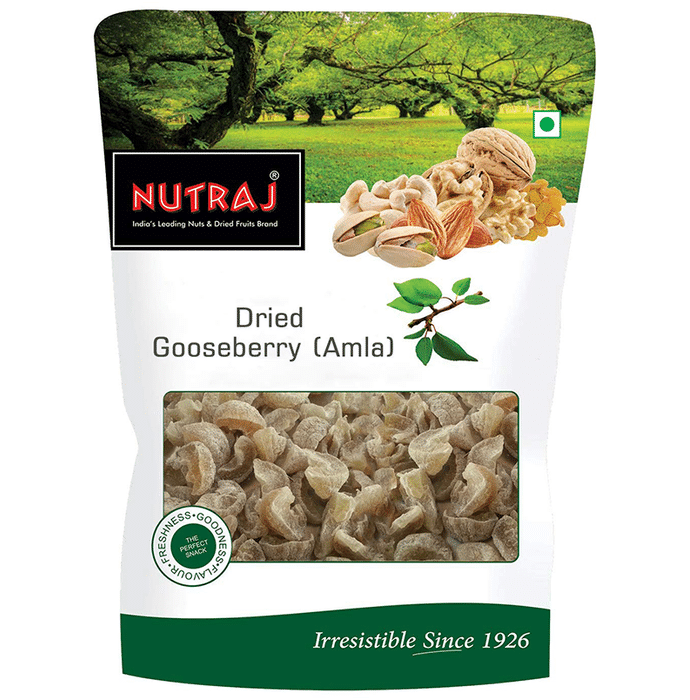 Nutraj Dried Gooseberry This humble fruit, Indian gooseberry(dried Amla), is one of the essential foods in Ayurvedic medicine and is a storehouse of good health. It has almost twice the antioxidant power of acai berry and about 17 times that of pomegranate. Its antibacterial and astringent properties can help boost one’s immune system. | Key Ingredients Dried Gooseberry and sugar | Key Benefits They are a rich source of antioxidants that can help in blood purification It is rich in vitamins that are essential for the growth of the body Raisins are rich in fibre and therefore help in detoxification and digestion It can help boost the immunity of the body It can help fight the common cold It can help improve eyesight Its antibacterial and astringent properties can help boost one’s immune system | Directions For Use Ready-to-eat or can be mixed. Use as per your requirement. | Safety Information Read the label carefully before use Do not exceed the recommended dosage Store in a cool, dry and hygienic place in an air-tight container