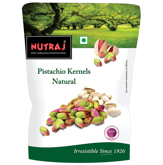 Nutraj Pistachio Kernels Natural have a unique texture and high nutritional profile. These are a great source of dietary fibre, vitamin B 6, phosphorus, copper and protein, and contain a balanced amount of essential amino acids. A blissful blend of taste and health, pistachios may help lower blood cholesterol. They are delicious and wholesome with an array of nutrients. | Key Ingredients Pistachios | Key Benefits A handful of pistachios to your daily diet may reduce the risk of heart diseases and diabetes This pista in shells is considered among the lowest-calorie nuts and is sourced directly from the lush farms of California A blissful blend of taste and health, pistachios may help lower blood cholesterol It can also help promote blood vessel health It may help to regulate cholesterol and blood pressure level | Directions For Use Ready-to-eat or can be mixed. Use as per your requirement. | Safety Information Read the label carefully before use Do not exceed the recommended dosage Store in a cool, dry and hygienic place in an air-tight container