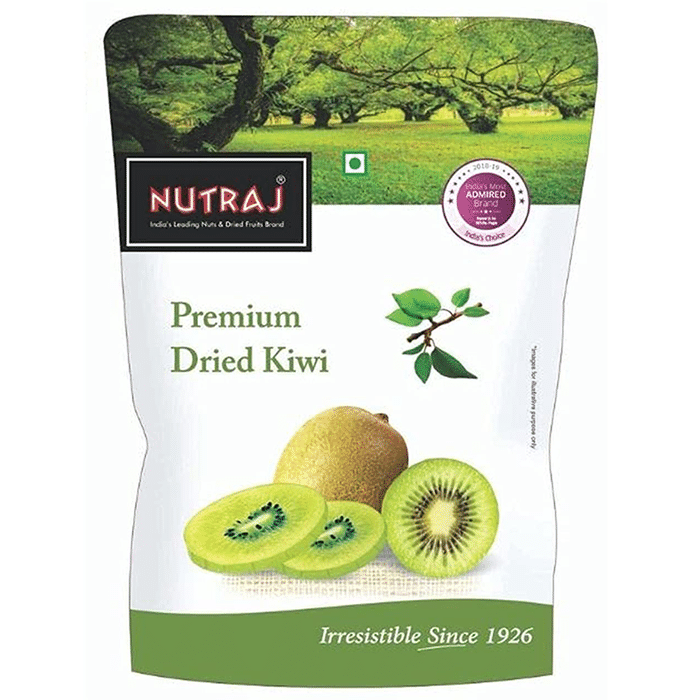 Nutraj Premium Dried Kiwi Nutraj Premium Dried Kiwi Tangy and sugary, this pack of dried kiwi is an all-time favourite. These kiwis contain twice as much vitamin C as oranges. They can help prevent constipation and irritable bowel syndrome. High potassium in kiwi can support heart health and protect against muscle mass loss. This healthy snack has been vacuum-packed to retain freshness.