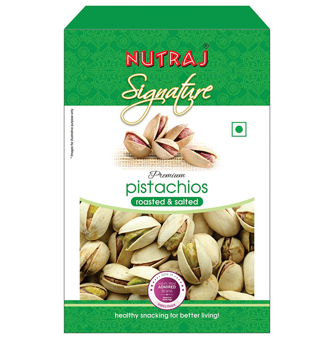Nutraj Signature Premium Pistachios Roasted & Salted is the ideal balance of healthy nutrients and nutty flavor. Pistachios naturally include essential vitamins, minerals, and antioxidants that support heart health and digestive health and assist in weight management. The goodness of pistachios is further enhanced by the fact that they are an udeal source of dietary fibre, vitamin B6, thiamine, phosphorus, and copper. In addition to being delicious, these delightful sweets promote beneficial bacteria for the digestive system and encourage heart health. | Key Ingredients: Pistachios | Key Benefits: These are protein-filled crunchy pistachios that are ideal for snacking They are packed with antioxidants and other essential vitamins and minerals like vitamin B 6, thiamine, phosphorus and copper It helps in the formation of good gut bacteria as itis such in dietary fibre It is beneficial for a healthy heart | Directions For Use: Use as a snack | Safety Information: Read the label carefully before use Store in a cool and dry place, away from sunlight Keep out of reach of children