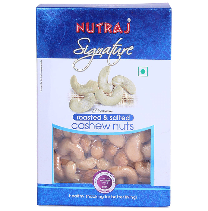 Nutraj Signature Premium Roasted & Salted Cashew Nuts Nutraj Signature Premium Roasted & Salted Cashew Nuts is a nut with a buttery-creamy flavor and several advantages. Cashews have anti-inflammatory and antioxidant properties that are good for your heart and intestines. Zea Xanthin, a potent antioxidant pigment that cashews are known to contain, may help shield your eyes from damaging UV radiation and support eye health. For a nutritious treat, combine these cashew nuts with oats or smoothies. You can also add them to yoghurt and other foods.