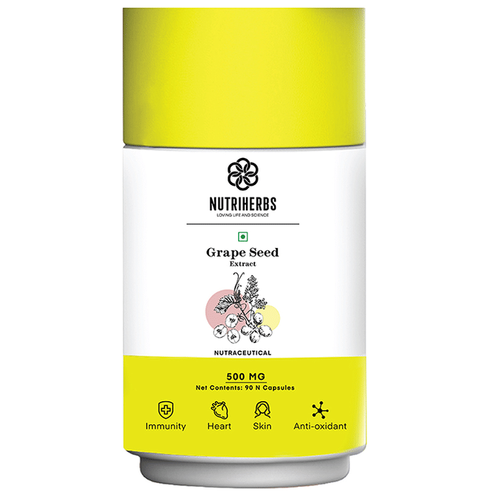 Nutriherbs Grapes Seed Extract 500mg Capsule Nutriherbs Grapes Seed Extract 500mg Capsule is a dietary supplement made by removing, drying and pulverizing the bitter-tasting seeds of grapes. Grapes seeds are rich in antioxidants which are used for the treatment of a variety of conditions including inflammation, pain, constipation, infections, and even various diseases.
