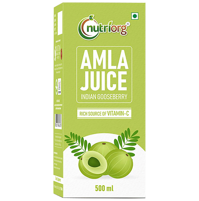 Nutriorg Amla Juice is made from organic amla cultivated in the company's certified organic farmland in Rajasthan. Nutriorg amla juice is pure and unadulterated. Amla is the richest source of vitamin C. It can boost immunity, good for the eyes, skin, and hair. It may help in improving the efficacy of other vitamins in the body. Amla is also known to improve vitality. Amla is a powerful herb to maintain overall health and well-being. Amla promotes longevity, improves digestion and health, stimulates hair growth, and enhances concentration and memory. It contains up to 20 times more vitamin C than oranges. It is also rich in proteins and fibres. It contains minerals such as iron, calcium, and phosphorous, besides vitamins A and C. It is one of the strongest immunity boosters, meaning regular amla intake may help build immunity. It can reduce skin concerns like acne, wrinkles, and other skin problems. | Key Ingredients: Amla Extracts | Key Benefits: Nutriorg amla juice is made from organic amla, which is cultivated in the company's own certified organic farmland situated in Rajasthan Nutriorg amla juice is pure and unaltered Amla may help to increase haemoglobin and red blood cell count It may help maintain digestive health It can aid in maintaining eye skin and hair health | Directions For Use: Mix 15 - 20 ml of Nutriorg amla juice in 200 ml of lukewarm water in a non-metallic pot and consume on an empty stomach twice a day, preferably morning and evening. | Safety Information: Read the label carefully before use Keep out of the reach of children Do not exceed the recommended dosage Store in a cool and dry place