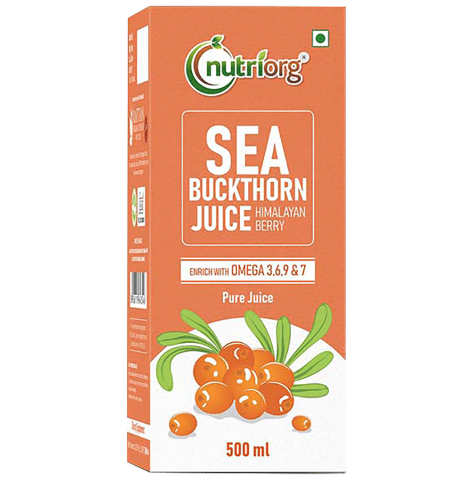 Nutriorg Sea Buckthorn Juice Nutriorg Sea Buckthorn Juice is prepared from Himalayan berries, a rich source of omega 3, 6, 9, and 7. It is a rich source of vitamin C as well. It is an antioxidant and may help to boost immunity. It is beneficial for hair, skin as well as digestion. It contains vitamin C, calcium, and 12 types of amino acids. The vitamin-C content in 1 glass (20ml Nutriorg sea buckthorn juice with 180ml water) of sea buckthorn juice equals 12 glasses of orange juice. Its restorative properties for the skin are magical for its possession of collagen-forming abilities. Nutriorg seabuckthorn juice is pure and unadulterated. The concentrated juice can be consumed daily by mixing some water as per taste.