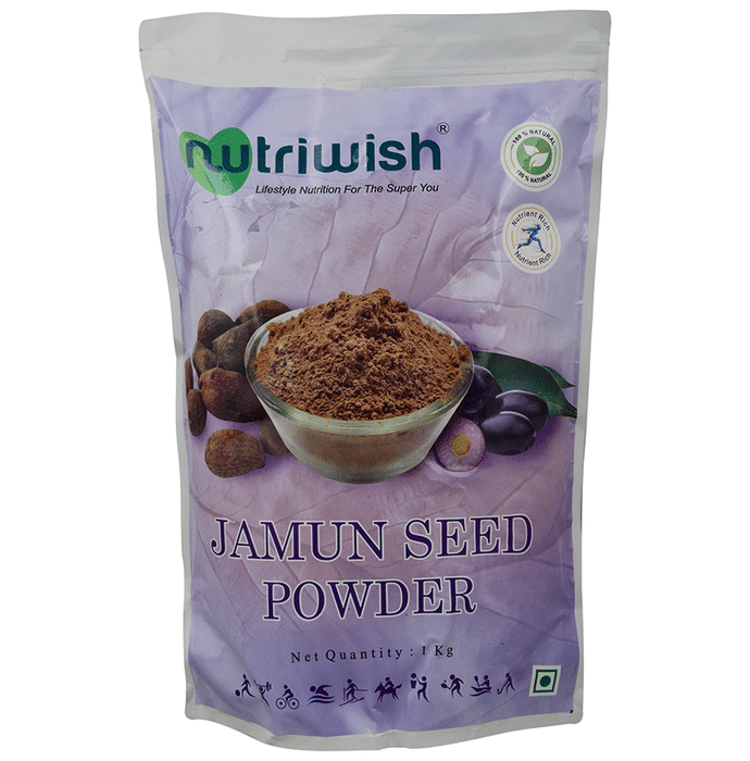 Nutriwish Jamun Seed Powder Nutriwish Jamun Seed Powder aids in the maintenance and regulation of blood sugar and fatty acid levels in the body. It supports the maintenance of a healthy digestive system and helps to enhance the immune system of the body. It also aids in the detoxification of the body and the weight-loss process. It's high in minerals like iron, magnesium, and calcium, which help the body produce haemoglobin, support cardiac health, and keep bones healthy.