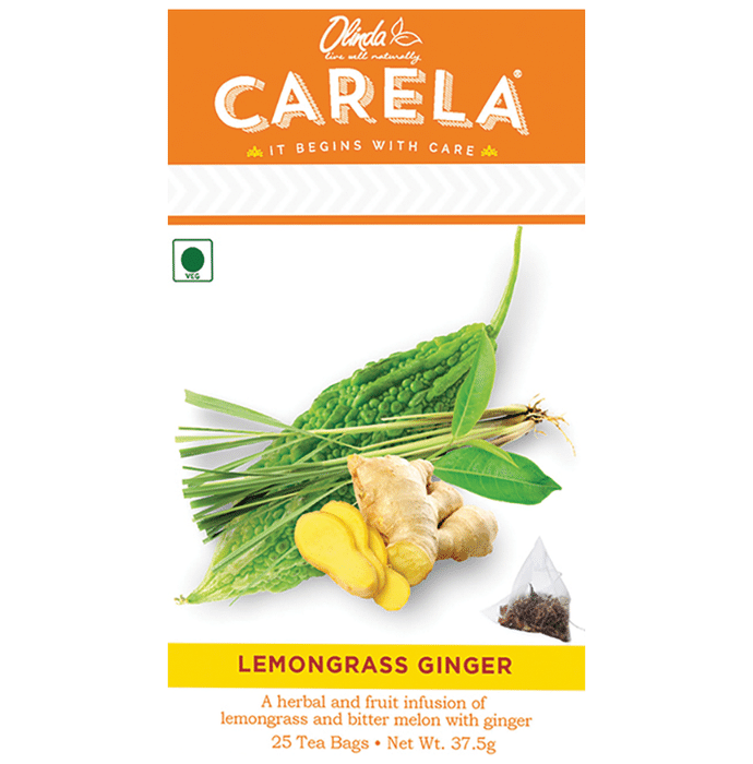 Olinda Carela Tea (1.5gm Each) Lemongrass Ginger Olinda Carela Tea Lemongrass Ginger is herbal and infused with fruits with insulin-like ingredients such as polypeptide-P, charantin, and vicin, which can help control blood sugar levels. It helps with detoxification and boosts the immune system. Lemongrass can help reduce pain and swelling and has antioxidant properties. Ginger can also help boost immunity.