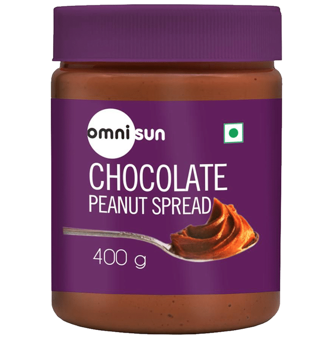 Omnisun Chocolate Peanut Spread is a peanut spread that has a delicious taste of chocolate and nutritious benefits of peanut. It is a creamy and silky blend that can be included the breakfast or in a healthy snack. It has no added oils and sugars. It is naturally sweet and has a dash of salt to balance the chocolate sweetness. It can be served as a spread on bread, toast, or crackers and can be used to make sandwiches. | Key Ingredients: Roasted peanuts Sugar Chocolate chips Cocoa powder Hydrogenated soya bean oil Iodized salt Emulsifier | Key Benefits: This peanut spread is a combination of peanut and dark chocolate which provide a yummy taste and essential nutrients It can be used as a spread on the bread to enhance the taste or it can be included in the sandwich This spread has no added sugar and oil | Directions For Use: Use as directed on the label. | Safety Information: Read the label carefully before use Do not exceed the recommended dosage Store in a cool and dry place away from direct sunlight Keep out of reach of children
