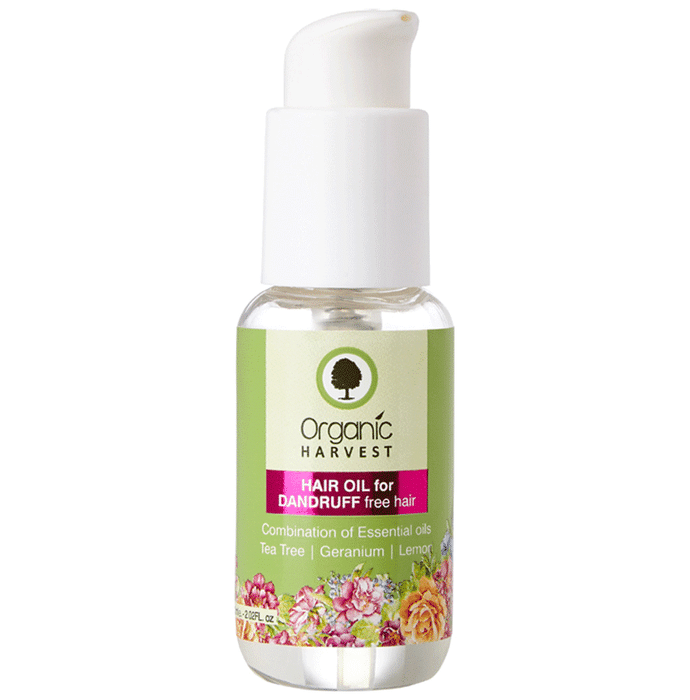 Organic Harvest Hair Oil for Dandruff Free Hair Organic Harvest Hair Oil For Dandruff Free Hair is an organic vegan product with extracts of Essential lemon oil and tea tree makes it very useful in eliminating dandruff and nourishing your scalp and hair follicles giving it a shiny and silky appearance.