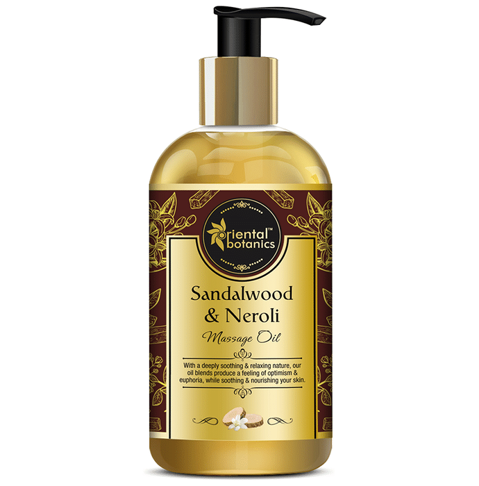 Oriental Botanics Body Massage Oil with Sandalwood & Neroli contains Rice Bran (Oryza Sativa) Oil, Sweet Almond (Prunus dulcis) Cold Pressed Oil, Virgin Golden Jojoba (Simmondsia chimesis) Cold Pressed Oil, Grapeseed (Vitis vinifera) Cold Pressed Oil, Organic Virgin Coconut (Cocus Nucifera) Cold Pressed Oil, Avocado (Persea Americana) Cold Pressed Oil, Safflower Seed (Carthamus tinctorius) Cold Pressed Oil, Fragrance Blend (Derived From Sandalwood & Neroli Essential Oil) - Oriental Botanics Massage Oil is perfect for moisturizing the skin and reducing muscle tension during massage time Key benefits/uses of Oriental Botanics Body Massage Oil with Sandalwood & Neroli: - Will freshen up and soothe your body and mind - Nourishing the skin Direction for use/Dosage: - Apply directly to sore muscles and massage gently for few minutes. Use it as often as needed Safety information: - Read the label carefully - Keep out of reach of children - Do not exceed the recommended dose