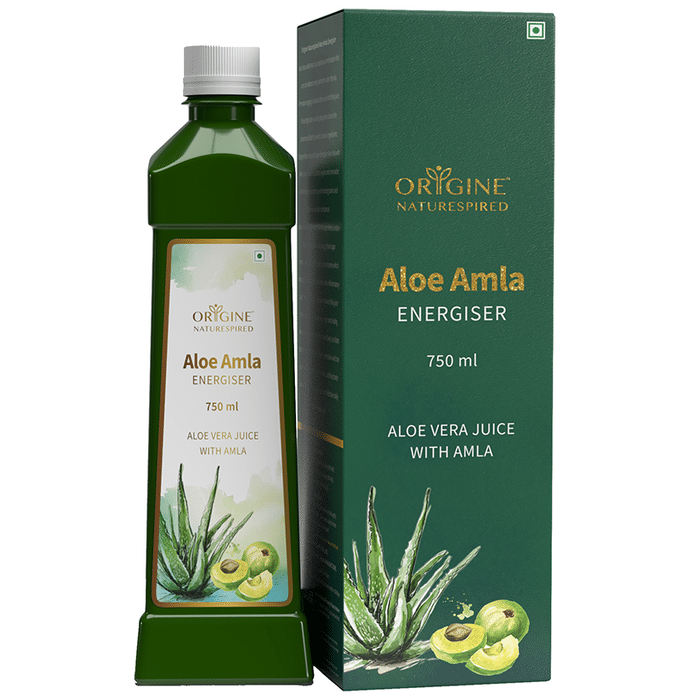 Origine Naturespired Aloe Amla Energizer Juice Origine Naturespired Aloe Amla Energizer Juice is packed with the goodness of many super herbs that are loaded with various nutrients that help replenish the body. This juice works to improve energy levels and boosts metabolism. The drink helps with heartburn and liver function. It also possesses antioxidant properties that help protect from the harmful free radicals. The antioxidants also works to delay ageing. The drink is made with 100% vegan and cruelty-free ingredients.