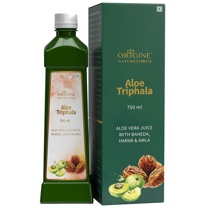 Origine Naturespired Aloe Triphala Juice Origine Naturespired Aloe Triphala Juice is packed with the goodness of many super herbs that are loaded with various nutrients that help replenish the body. This juice works to improve cardiovascucar and digestive health. The drink helps lower blood pressure levels and detoxify the blood. It possesses antioxidant property that help protect from the harmful free radicals. It also works to provide relief from gut problems. It is made with 100% vegan and cruelty-free ingredients.