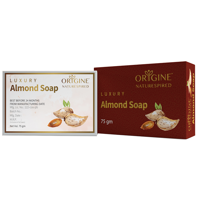 Origine Naturespired Luxury Almond Soap is a natural gentle cleansing bar that restores the skin's natural pH and moisture levels for enhancing nourishment. The moisturising almond soap is crafted using organic almond, milk and natural plant compounds to provide natural care to the skin to reduce dryness, dullness, and flakiness, effortlessly. It provides a smoother and silkier texture to the skin. The soap is suitable for all skin types and offers gentle and rejuvenating care from the inside out. This natural moisturizing soap is dermatologically tested, 100% vegan and crafted from cruelty-free ingredients. | Key Ingredients: Almond | Key Benefits: It helps reduce dryness and flakiness It helps lock in moisture and keeps the skin hydrated It helps improve the skin texture and complexion It fades away all the imperfections bringing out a radiant glow It helps the skin rejuvenate and regenerate It leaves the skin silky soft and supple It helps balance the skin's pH balance It is dermatologically tested and clinically approved It is a natural product which is paraben-silicon-chemicals free | Directions For Use: Use as directed on the label. | Safety Information: Read the label carefully before use Keep out of reach of the children Store in a cool dry place