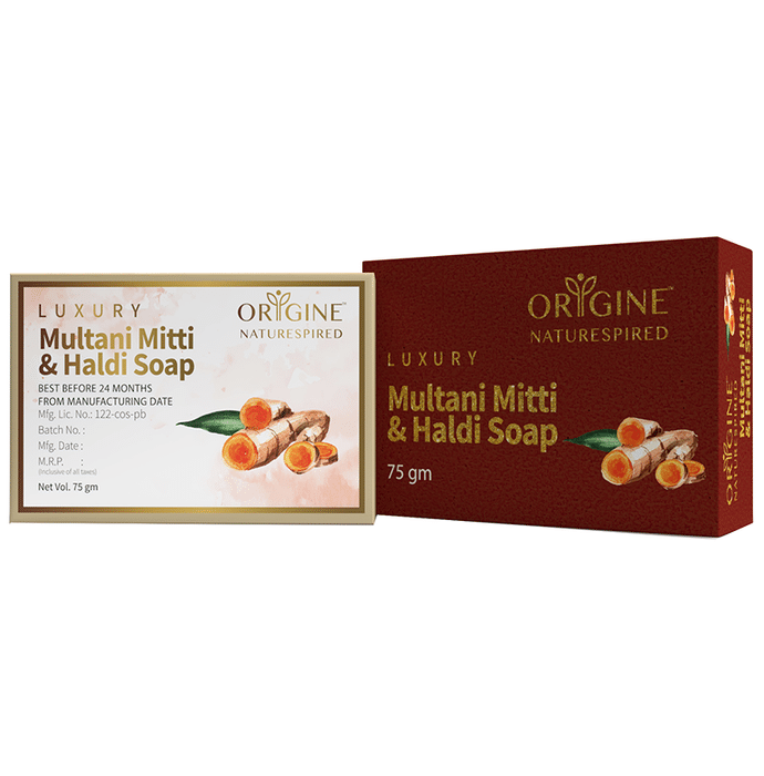 Origine Naturespired Luxury Multani Mitti & Haldi Soap Origine Naturespired Luxury Multani Mitti and Haldi Soap is formulated using Multani Mitti and Haldi to offer many benefits for skincare. This soap is crafted wonderfully to help with the ageing process and promote deep-cleansing of the skin. It even helps maintain a youthful and clear glow. This organic soap is made using 100% vegan and cruelty-free substances to offer the best care for the skin. The mild fragrance helps you feel relaxed. The natural components present offer 24 hours of moisturisation by reducing dryness and other skin concerns and it is suited for all skin types.