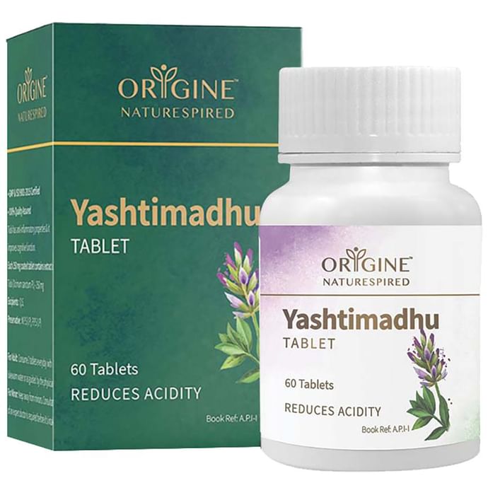 Origine Naturespired Yashtimadhu Tablet Origine Naturespired Yashtimadhu Tablet is composed of organic yashtimadhu. These tablets help with digestive issues and skin problems. These pills help with weight management and respiratory issues. They also help with women's health as they help alleviate menstrual problems and provide relief from premenstrual syndrome (PMS).