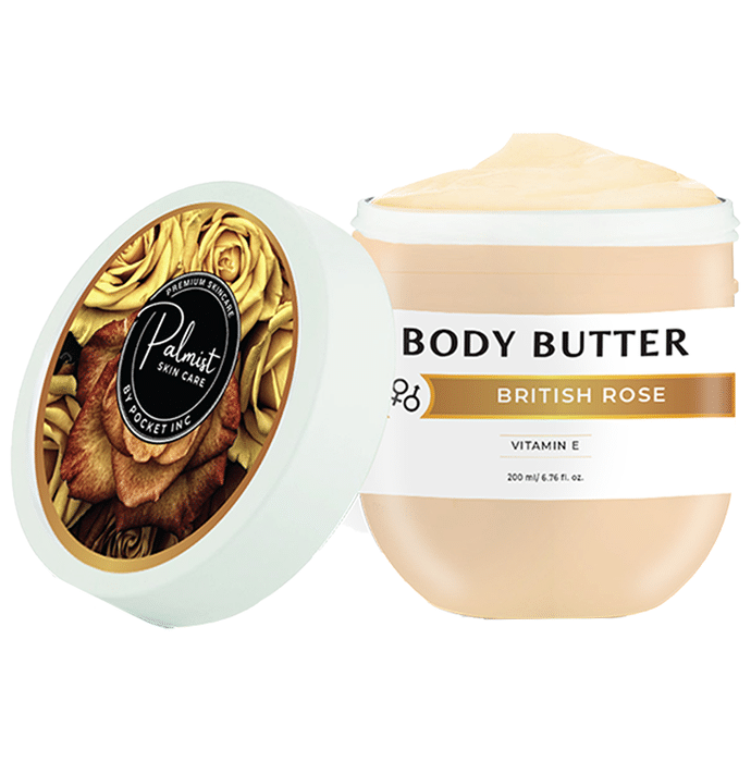 Palmist Body Butter British Rose indulges in dewy hydration with glow-enhancing pink rose essence. This velvety-soft body butter is light to the touch but rich in moisture. Non-sticky and perfect for normal to dry skin, it transforms instantly on skin to give an instant all-over healthy-looking glow and subtly scented skin that’s hydrated for up to 24 hours | Key Ingredients: Rose | Key Benefits: The creamy formulation is infused with rose water and rose essentials to give the complexion a radiance boost A rich, yet lightweight body butter that glides on like a dream and locks in moisture for hours It has excellent emollient properties which increase skin elasticity The antioxidants in butter help in the regeneration of cells and regular use help prevent wrinkles This body butter provides hydration and nourishment while making the skin feel good throughout the day | Directions For Use: Use as directed on the label or as advised by your healthcare provider. | Safety Information: Read the label carefully before use Store in a cool and dry place away from direct sunlight Keep out of reach of children