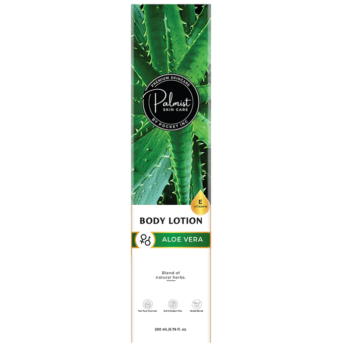 Palmist Body Lotion Aloe Vera It provides optimal nourishment and is specially formulated for sensitive and dry skin. It is designed using ingredients that work together to deal with the dryness of the skin. It deals with any damage caused by the dryness on the surface of the skin. This skin-loving body lotion comfort protects and restores dry skin. | Key Ingredients: Aloe vera Triticum sativum Cocos nucifera Ocimum sanctum | Key Benefits: The lotion is formulated to provide ultra-light, non-greasy, soothing and long-lasting hydration with intensive anti-ageing qualities This skin-loving body lotion comforts protects and calms dry skin and has a long-lasting fragrance Enriched with the goodness of vitamin E, it is specially formulated for sensitive and dry skin This lotion has a non-greasy, quick absorb formulation that gives long-lasting and balanced moisturisation to dry skin This product is paraben-free, dye-free, essential oil-free, cruelty-free, vegan and dermatologist tested It also helps to heal dry skin with long-lasting moisture to instantly boost the skin's natural radiance | Directions For Use: Use as directed on the label or as advised by your healthcare provider. | Safety Information: Read the label carefully before use Store in a cool and dry place away from direct sunlight Keep out of reach of children