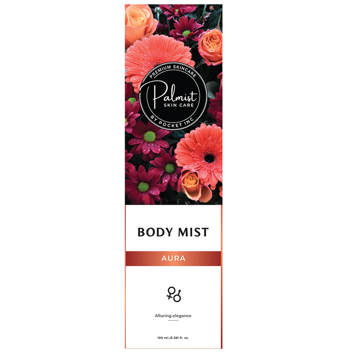Palmist Body Mist Aura The body mist is the perfect blend for those moments when one needs to be revitalized. It refreshes you with its gentle and uplifting fragrance. It elevates mood and helps with insomnia, stress, and depression. Long-lasting body mist scents are skin-friendly because they contain no parabens or sulfate. The scent lasts up to four hours and gives a refreshing feel. | Key Ingredients: Pogostemon patchouli Aquilaria agallocha Ethyl alcohol Excipient QS Vetiveria zizanioides Rosa centifolia Citrus limon | Key Benefits: This exotic essence has a long-lasting formula that keeps the body fresh and smelling good for up to 24 hours The natural scent of flowers infused with herbal concentrates comes in a skin-safe formula that removes the odour Relax essential oil can effectively help to release negative emotions, calm the mind and reduce stress It is the perfect blend for those moments when one needs to be revitalized Relaxing body mist benefits by calming down the nerves and thus considerably reducing stress This body mist has an energizing and herbaceous aroma that helps you breathe healthily It gives a fab smell in a travel-friendly pack | Directions For Use: Use as directed on the label or as advised by your healthcare provider | Safety Information: Read the label carefully before use Store in a cool and dry place away from direct sunlight Keep out of reach of children