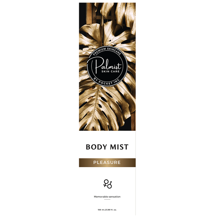 Palmist Body Mist Pleasure It elevates mood and helps with insomnia, stress, and depression—a scent for when you want that extra bit of charisma and sensual charm. The long-lasting fragrance lasts for 4 hours and doesn't overpower you. It refreshes you with its gentle and uplifting scent. The body mist is the perfect blend for those moments when one needs to be revitalized. | Key Ingredients: Citrus limon Pogostemon patchouli Aquilaria agallocha Ethyl alcohol Vetiveria zizanioides Rosa centifolia Excipient QS | Key Benefits: This exotic essence has a long-lasting formula that keeps the body fresh and smelling good for up to 24 hours It hydrates while making you smell heavenly without damaging the skin The natural scent of flowers infused with herbal concentrates comes in a skin-safe formula that removes the odour Relax essential oil can effectively help to release negative emotions, calm the mind and reduce stress It is the perfect blend for those moments when one needs to be revitalized Relaxing body mist benefits by calming down the nerves and thus considerably reducing stress This body mist has an energizing and herbaceous aroma that helps you breathe healthily It gives a fab smell in a travel-friendly pack | Directions For Use: Use as directed on the label or as advised by your healthcare provider. | Safety Information: Read the label carefully before use Store in a cool and dry place away from direct sunlight Keep out of reach of children