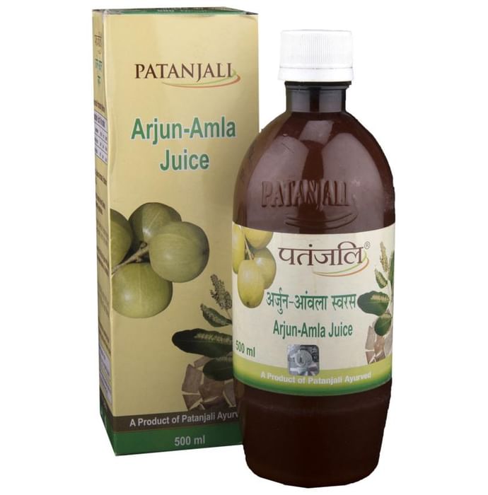 Patanjali Ayurveda Arjun-Amla Juice Patanjali Arjun Amla Juice is a combination of Arjuna Bark and Amla Juice and is a natural source of vitamin C. Arjuna is the best herb for heart disease, prevents and helps in the recovery of angina and heals heart tissues. It acts as a cardiac stimulant, helps to prevent bleeding, and is a rejuvenative tonic. Arjuna has been described as a well known Cardiac tonic in ancient Indian Scriptures. Patanjali Arjun Amla Juice Ingredients: Arjuna Herb – 5.9 ml Amla Fruit – 4.1 ml Patanjali Arjun Amla Juice Dosage: One teaspoonful to be taken twice in a day with luke warm water after meals, or as directed by the physician. Use under medical supervision.