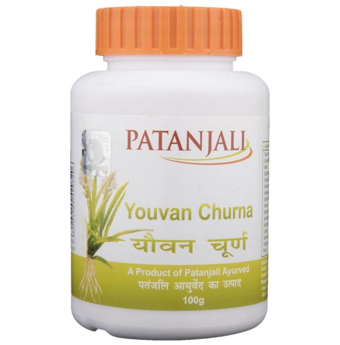 Patanjali Ayurveda Youvan Churna Patanjali Ayurveda Youvan Churna contains Salam Panja, Salam Mishri, Mishri, Safed Moosli, Kshirakakoli, Ashwagandha, Gond Katira, Palasha, Bahman Safed, Jaharmohra Bhasma, Lohban, Babool Gond, Glucose, and Boora as a combination of ingredients. Key benefits/uses of Patanjali Ayurveda Youvan Churna: - Prevents premature aging - Fights weak immunity - Act like a great nutrient for strengthening the body - Increases sperm count Direction for use/Dosage: - Take Patanjali Ayurveda Youvan Churna as directed by the physician Indications: - General debility, weakness & loss of immunity Storage instructions: - Store the formulation in cool and dry place Safety information: - Read the label carefully before use - Do not exceed the recommended dose - Keep out of the reach and sight of children