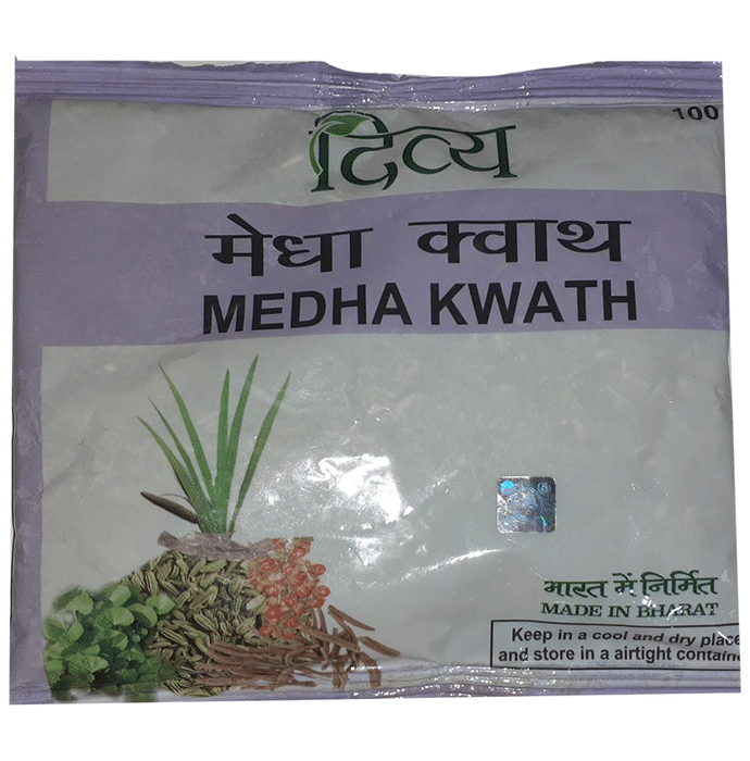 Divya Medha Kwath contains Brahmi (Bacopa monnieri), Shankhpushpi (convolvulus pluricaulis), Gurbuch (Acorus calamus), Ustakhaddus (Lavandulastoechas), Gajva (Onosmabracteatum), Malkangni (Celastruspaniculatus), Ashwagandha (Withaniasomnifera), Sonff (Foeniculum vulgare) and Puskar mul (Inularecemosa) as a combination of ingredients - The time-tested ayurvedic formulation that is guaranteed to give relief from mild to severe headaches, migraine attacks, and sleeplessness - Prepared from the goodness of natural and herbal extracts Key benefits/uses of Divya Medha Kwath: - Shows anti-depressant properties - Helps boost the brain and nervous system - Strengthens the nerves - Corrects imbalances in neurotransmitters thus providing relief in epilepsy and paralysis - Improves headaches, sleeplessness and migraine attacks Direction for use/Dosage: - Mix 5-10 grams of Divya Medha Kwath in around 400 ml water and boil it, till residue is 100 ml - Filter it and take on the empty stomach in the morning and one hour before dinner or before going to sleep - Or as directed by the physician Indications: Headaches, migraine attacks, epilepsy, paralysis effects, psychological, depression and neurological problems Storage instructions: Store the formulation in cool and dry place Safety information: - Read the label carefully before use - Do not exceed the recommended dose - Keep out of the reach and sight of children