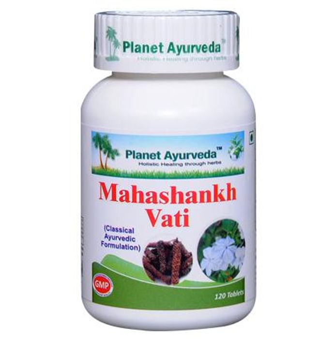 Planet Ayurveda Mahashankh Vati Planet Ayurveda Mahashankh Vati is an ayurvedic formulation that consists of a mixture of herbs and minerals. It is known for its properties like digestive, antipyretic, analgesic, appetizer and anti-rheumatic etc. The herbs present in this formulation are beneficial and natural solutions for gas and acidity, and gastric ulcers. It is also very effective in relieving reflux problems, ulcerative colitis, and indigestion.