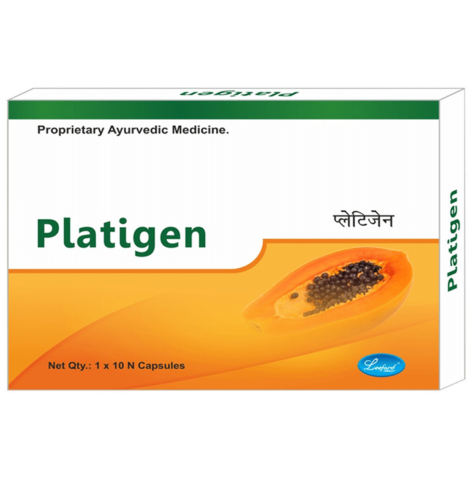Platigen Capsule Platigen Capsule is a perfect ayurvedic remedy to increase platelets and white blood cells in the blood to increase health and immunity. Platigen Capsules contains Carica papaya and Tinospora cordiofolia extracts and milk powder which are effective in treating all bacterial and viral infections. Platigen Capsules are both preventive and curative and make for an ideal herbal remedy that increases platelet count and simultaneously offers potent immunomodulatory action.