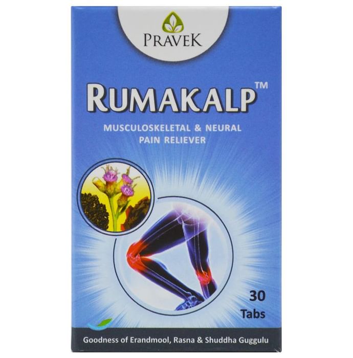 Pravek Rumakalp Tablet reduces pain and inflammation of muscles, nerves and joints. It is a non-steroidal ayurvedic formulation. It is a certified non-steroidal formulation and is therefore an ideal substitute to allopathic NSAIDs (Non-Steroidal Anti-Inflammatory Drugs). It is useful in removing the inflammation and pain in joints and stiffness of muscles. | Key Ingredients: Nirgundi Maharasnadi Kwath Gandhprasarini Erandmool Ashwagandha Shuddha guggulu | Key Benefits: Also useful in treating cases of sprain, musculoskeletal pain and inflammation It also helps relieve inflammation Used to strengthen bones, nerves and muscles | Directions For Use: 1-2 tablets twice a day with milk/ water, or as directed by the physician. | Safety Information: Read the label carefully before use Store in a cool dry place away from direct sunlight Keep out of reach of the children