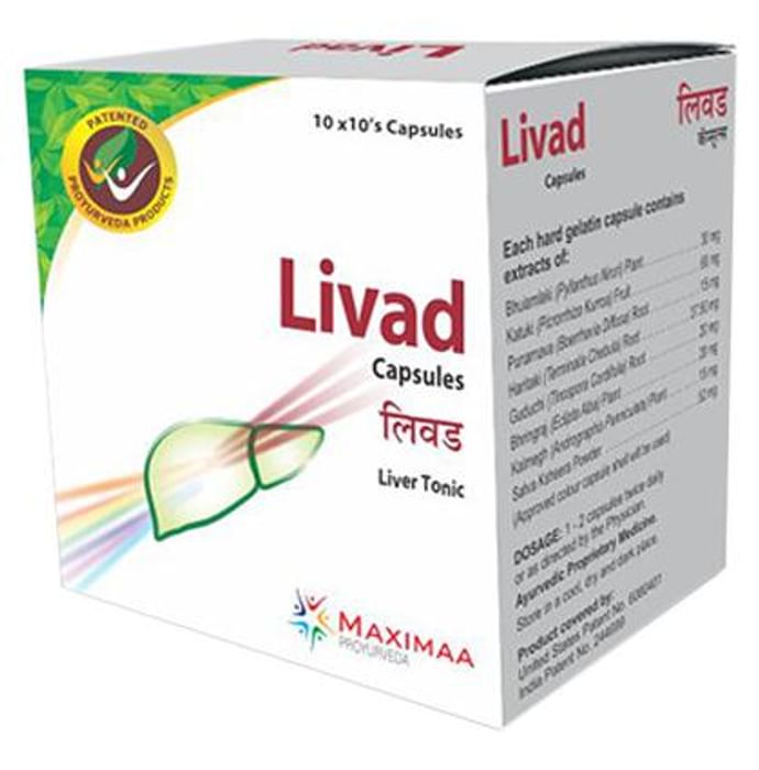 Proyurveda Livad Liver Capsule Proyurveda Livad Capsule is created with the perfect blend of probiotics and special ayurvedic herbs protects the liver against various hepatotoxins and is a blood purifier. It contains Bhuiamlaki, Punarnava, Katuki, Harada, and Guduchi. Key benefits of Proyurveda Livad Capsule: It blocks the enzyme which is responsible for reproduction of hepatitis B virus. It reduces the swelling of liver and increases the bile flow. It protects the liver against various hepatotoxins and is a blood purifier. Rejuvenates the liver and is useful in treating hepatitis and liver cirrhosis. Direction of use: Take one to two capsules two times a day, preferably with milk or as directed by the physician. Use under medical supervision.