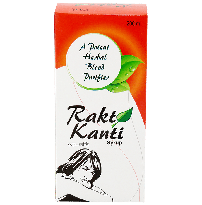 Rakt Kanti Syrup is made up from ingredients that work together to help treat skin problems such as acne, blemishes and boils. It is used to counter blood loss during menstruation and acts as a blood purifier that eliminates the body of toxins. | Key Ingredients: Brahmi Gulab Lodh Shar punkha Nag kesar Chop chini Kachoor Khas Pitpapra Dalchini Sujhan chhal | Key Benefits: Can act as a blood purifier that helps in ridding the body of toxins Traditionally used for excessive blood loss during menstruation It helps in improving the skin texture and quality, balancing for Pitta and Kapha It is useful in helping treat in skin problems like, acne, pimples, blemishes and Boils | Directions For Use: Use as directed by the physician. | Safety Information: Read the label carefully before use Keep out of reach of the children Store in a dry place away from direct sunlight
