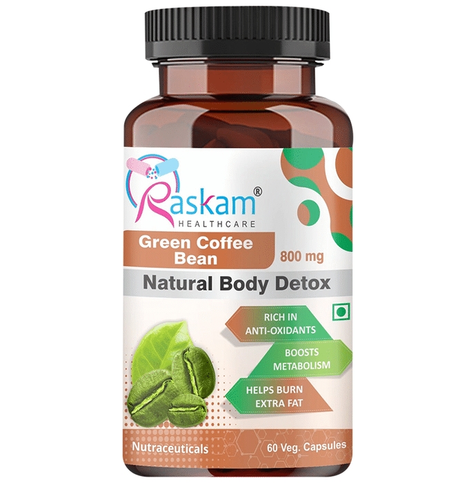 Raskam Healthcare Green Coffee Bean 800mg Veg Capsule Raskam Healthcare Green Coffee Bean Veg Capsule is a formulation derived from unroasted or raw coffee beans that can be beneficial for the health of skin and hair. It has many beneficial compounds such as chlorogenic acid, lignans, trigonelline and lignans that promote general health and well-being. This capsule can be effective in enhancing our immune system moreover it is rich in antioxidants that can remove the free radicals from the body. This capsule also supports weight management problems and can be used effectively by both males and females.