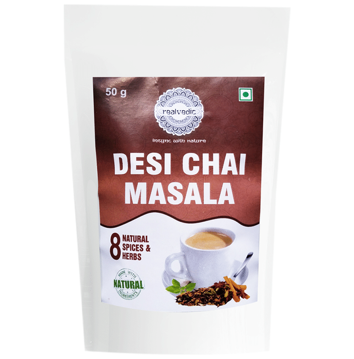 Realvedic Desi Chay Masala Realvedic Desi Chay Masala is made with the finest black tea, a blend of spices and Tulsi which makes the ultimate flavour of the tea. It has an anti-stress and immune-supportive function. It is rich in anti-oxidants and very helpful against cough and cold. Moreover, it enhances the stamina and immunity level of the body.