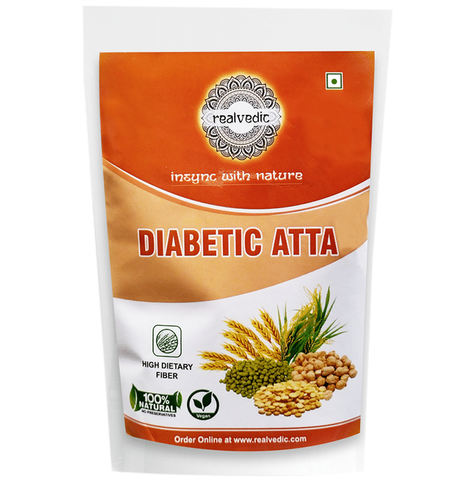 Realvedic Diabetic Atta Realvedic Diabetic Atta is a protein-rich substitute for your regular wheat flour that helps you maintain your blood sugar levels. It contains a mixture of natural grains which helps reduce the overconsumption of carbohydrates in the body and replace the saturated fats in the diet with essential vitamins and minerals.