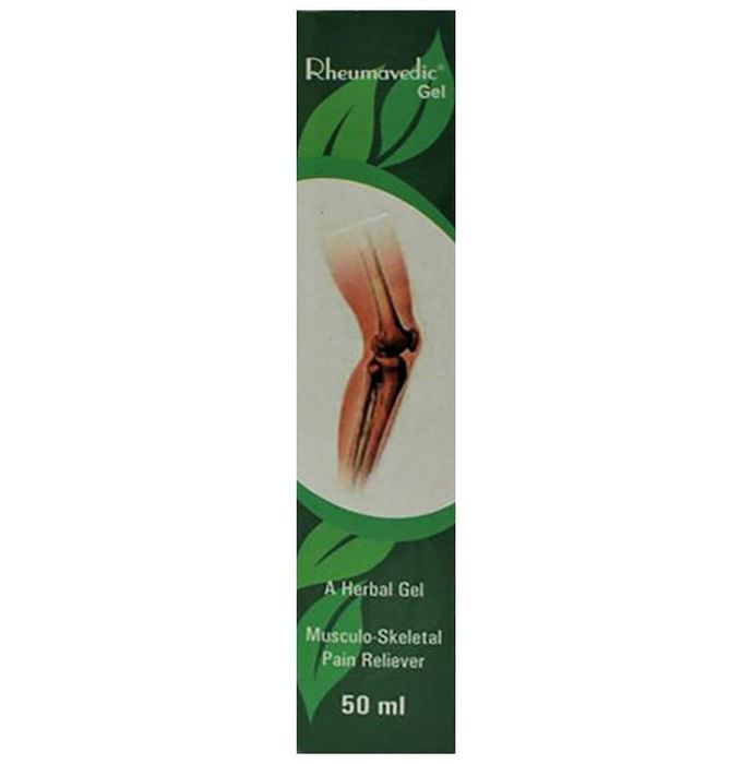 Rheumavedic Musculo-Skeletal Pain Reliever Herbal Gel is a anti-inflammatory, analgesic, anti-rheumatic, muscle relaxant and neuro-muscular toning. It helps in the treatment of neuro muscular disorders of varied origin, Rheumatic and Rheumatoid arthritis. | Key Ingredients: Languli Guggulu Nirgundi Bakuchi Bala Shatavari Devadaru Vatsanabha Shilajith | Key Benefits: Rheumavedic oil is an anti-Rheumatic and anti-inflammatory muscular-skeletal pain reliever Muscle relaxant and Neuromuscular toning properties keeps joint movements free for active life Helps in treating a type of arthritis that occurs when flexible tissue at the ends of bones wears down | Directions For Use: Sufficient quantity of gel to be applied over the affected part followed with gentle massage. | Safety Information: Read the label carefully before use Store in a cool dry place away from direct sunlight Keep out of reach of the children
