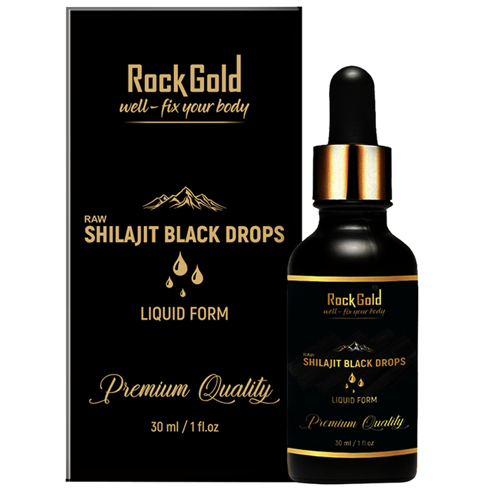 Rock Gold Raw Shilajit Black Drop aims at restoring the balance of life. Balance has long been acknowledged as the key to achieving wellness. Our Pure Shilajit Liquid is free from microbial contaminants, gluten, allergen and contain no artificial fillers, binders or ingredients of animal origin. | Key Ingredients: Ayurvedic Shilajit liquid | Key Benefits: Shilajit contains fulvic acid and more than 84 minerals, so it offers numerous health benefits It can function as an antioxidant to improve the body's immunity and memory Acts as an anti-inflammatory, an energy booster and a diuretic to remove excess fluid from the body | Directions For Use: Mix 4-5 drop of juice with lukewarm water and consume 2-3 times after meals or as directed by the physician. | Safety Information: Read the label carefully before use Keep out of reach of the children Store in a cool dry place
