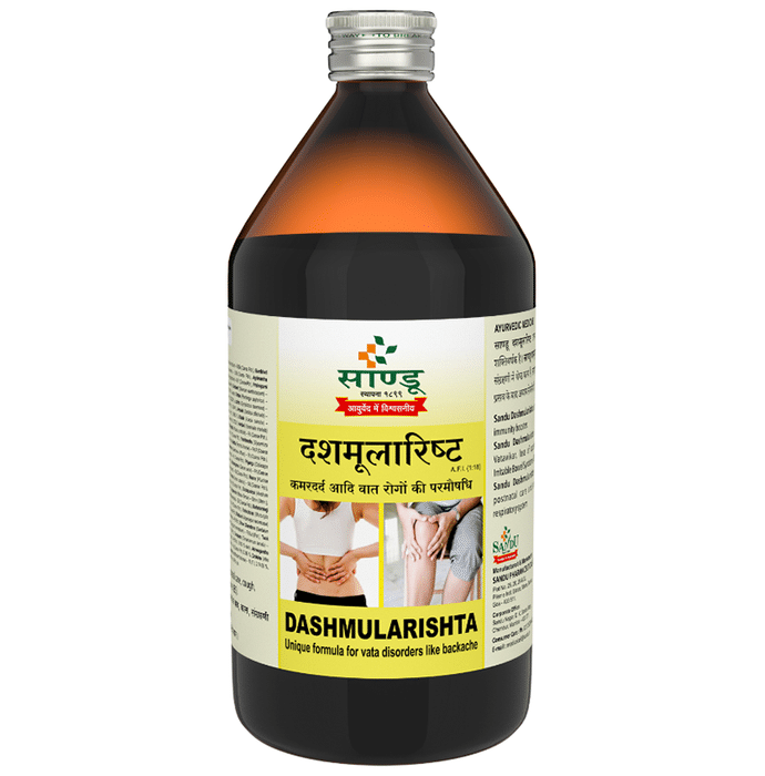 Sandu Dashmularishta is a 100% natural tonic that helps maintain good health and increase immunity. It has a unique formulation of Dashmool and Vata pacifying herbs that helps treat problems related to the reproductive system. It aids in recovery from post-delivery weakness and increases stamina. It enhances immunity and helps new mothers rejuvenate and revitalize. | Key Ingredients: Dashmula Lodhra Guduchi Triphala Sariva Draksha | Key Benefits: It improves the overall health of the musculoskeletal system and the female reproductive system It relieves abdominal pain, excessive vaginal discharge and other complaints related to women's well-being It provides relief from lower back ache, joint pain, fatigue and muscle pain It rejuvenates the strength and immunity of women, including new mothers | Directions For Use: Read the label carefully before use. | Safety Information: Read the label carefully before use Do not exceed the recommended dosage Store in a cool and dry place away from direct sunlight Keep out of reach of children