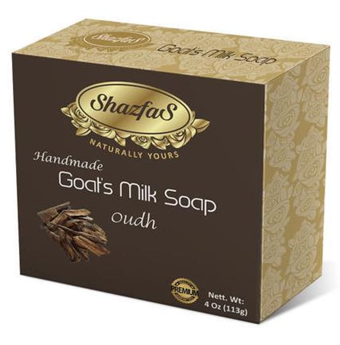 ShazfaS Goat Milk Soap Oudh ShazfaS Goat Milk Soap is packed with vitamins and minerals, all that body and skin need. Being a great emollient, it gets instantly absorbed by the skin and creates a moisturise barrier to keep it soft, smooth and supple. The creamy texture of the soap gives a luxurious softness and reaches the cracks and gaps formed between the cells quite easily.