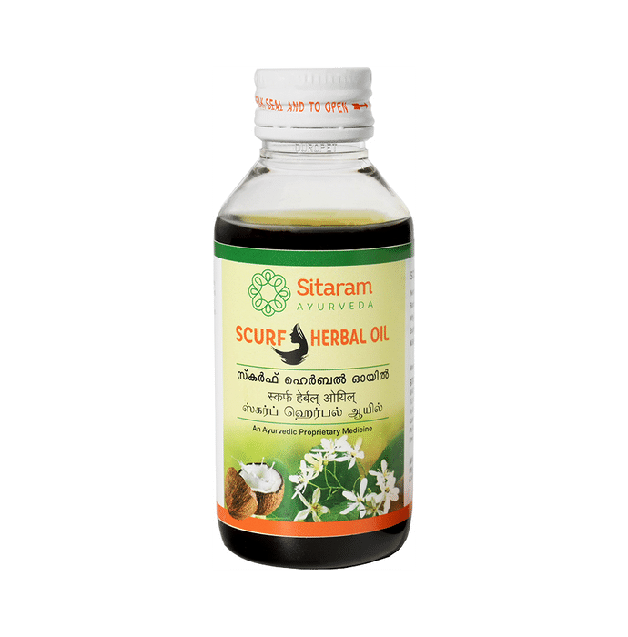 Sitaram Ayurveda Scurf Herbal Oil Sitaram Ayurveda Scurf Herbal Oil is a potent blend of dhanthapala and durdura in a coconut oil base. Dhanthapala has anti-inflammatory and anti-dandruff properties whereas coconut oil provides nourishment and hydration to the hair. It exfoliates the scalp, improves blood circulation and prevents bacterial and function infections.