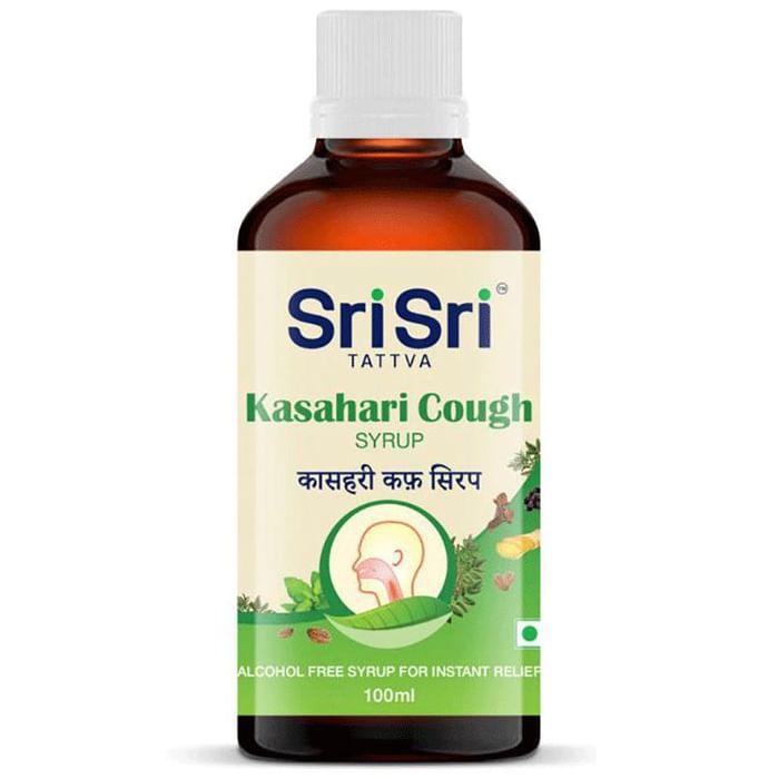 Sri Sri Tattva Kasahari Cough Syrup is a unique herbal formulation with quality herbs that are effective broncho relaxants, expectorants and respiratory demulcents. It provides quick relief from dry coughs, allergic coughs and coughs with phlegm. | Key Ingredients: Solanum Xanthocarpum, Adhatoda Vasica, Ocimum sanctum, Glycyrrhiza Glabra, Zingiber Officinalis, Piper nigrum, Caryophyllus Aromatics, Terminalia Chebuls | Indications: It is indicated in dry coughs, allergic coughs and coughs with phlegm. | Key Benefits: Helps in treating infections, allergies, inflammation and other kinds of issues faced by the respiratory tract It effectively treats productive cough and non-productive cough Effective for treating various other respiratory problems Manages all types of cough and cold It fights against infection and is useful in sore throat Useful in mild fever and boost immunity | Dosage: Children should consume 10-15ml of the syrup for children of the age 1 to 6 years Infants should consume 1/4 to 1/2 tablespoons or as prescribed by the physician | Safety Information: Read the label carefully before use Do not exceed the recommended dose Keep out of the reach of children Store in a cool and dry place away from direct sunlight