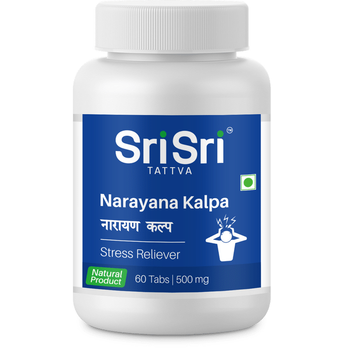 Sri Sri Tattva Narayana Kalpa 500mg Tablet Sri Sri Tattva Narayana Kalpa- Stress Reliever Tablet is a very effective ayurvedic medicine which improves management of anxiety, depression, insomnia, stress, restlessness and similar conditions. It also helps in the management of blood pressure and promotes overall cardiovascular health.