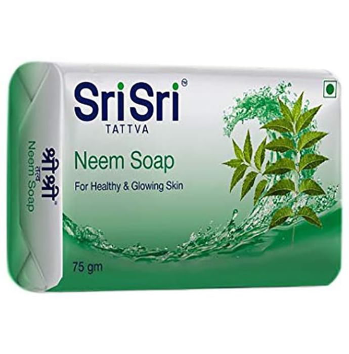 Sri Sri Tattva Neem Soap Sri Sri Tattva Neem Soap is neem enriched soap bar that has antifungal and antibacterial properties which help in clearing up skin rashes, acne and leaves your skin healthier and shinier. This is a skin friendly product that has no harmful effects on the skin and is totally safe to use.