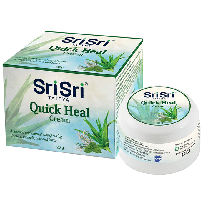 Sri Sri Tattva Quick Heal Cream Sri Sri Tattva Quick Heal Cream is quite versatile. It is used in healing cuts, burns and is effective for treating skin complaints and problems. Helps cure inflammatory swelling, injury, wounds, cuts and scrapes.