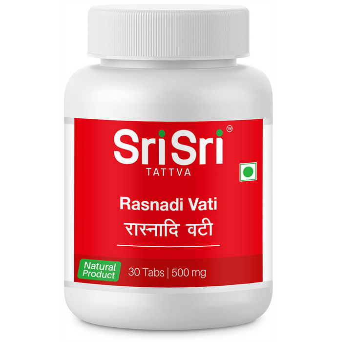 Sri Sri Tattva Rasanadi Vati Sri Sri Tattva Rasanadi Vati is a muscle relaxant and a pain reliever that helps to get rid of pain, stiffness and numbness in the limbs. It's main constituent is rasna which is particularly effective in relieving all types of joint pains. This formula helps with conditions due to exertion . It decrease heat and discomfort caused by excessive vata which lead to other conditions in Ayurveda. It helps relieve joint associated discomfort and arthritis.