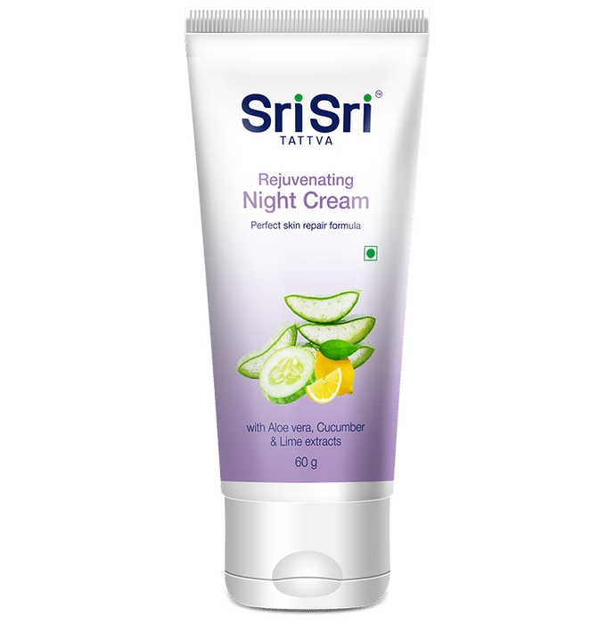 Sri Sri Tattva Rejuvenating Night Cream Sri Sri Tattva Rejuvenating Night Cream relaxes skin overnight by reviving and revitalizing it. Daily use of cream makes skin look radiant and beautiful, especially if used regularly at night.