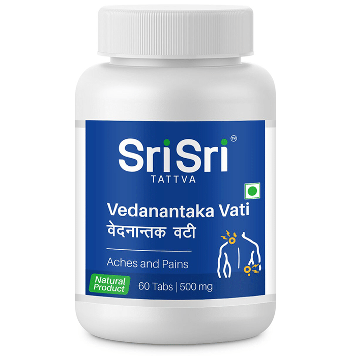 Sri Sri Tattva Vedanantaka Vati 500mg Sri Sri Tattva Vedanantaka Vati is a unique herbal formulation that helps fight with all types of body aches quickly and effectively. It is a blend of potent classical medicated plants. Sri Sri Tattva pain killer is most effective in common body aches, headaches, gout, and joint pain.