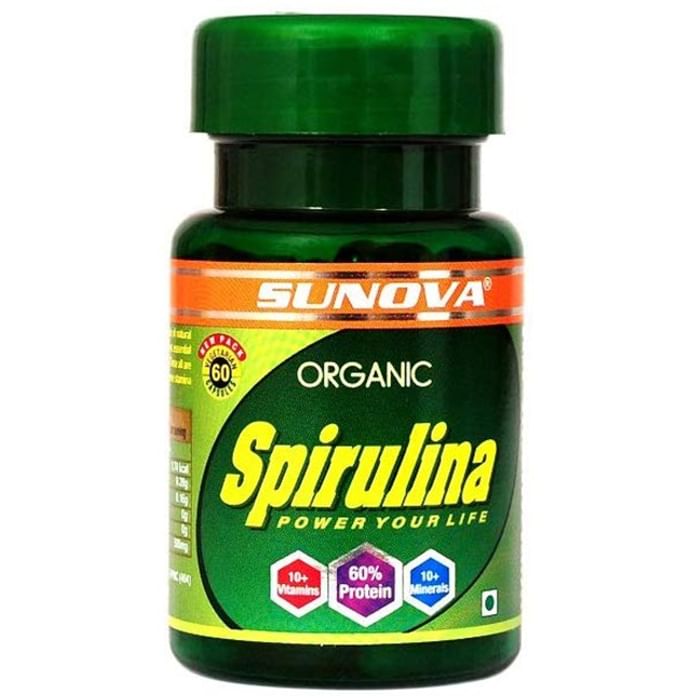 Sunova Organic Spirulina Capsule Sunova Organic Spirulina Capsule contains organic nutrient-rich blue-green algae (spirulina platensis). The natural algae act as a nutritional supplement. It also has higher vitamin and protein content. Due to this, these capsules make a great dietary supplement for vegetarian or vegan people.