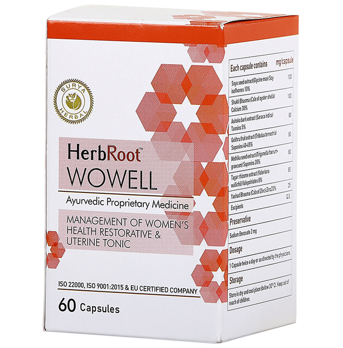 Surya Herbal HerbRoot Wowell Capsule HerbRoot Wowell Capsules is a natural tonic for women. It helps aid normal and healthy uterine function. It is useful in treatment of dysmenorrhea, leucorrhoea and pre-menopausal complications.