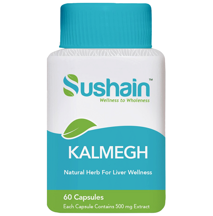 Sushain Kalmegh 500 mg Capsule It is a dietary supplement formulated with kalmegh that can support your liver wellness. Kalmegh has antioxidant, anti-inflammatory and hepatoprotective properties that protect the liver against damage caused by free radicals. It also helps boost immunity and manage the symptoms of the common cold, sinusitis and allergies due to its antimicrobial and immunomodulatory properties. | Key Ingredients: Kalmegh | Key Benefits: Kalmegh has anti-bacterial, anti-inflammatory, anti-viral and anti-parasitic properties, which fortify the immune system Its antioxidant properties can help protect the liver against damage caused by free radicals due It can help support liver health and detoxification It can boost the immunity and manage the symptoms of the common cold, sinusitis and allergies | Directions For Use: Take 1-2 capsules twice daily or as directed by your physician | Safety Information: Read the product label carefully before use Store in a cool and dry place away from direct sunlight Keep out of reach of children To be taken under medical supervision Do not use if the product appears to be tampered with or the seal is broken